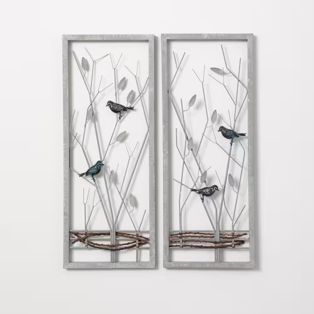 SULLIVANS 12.5" x 32" Sculpted Gray Metal Bird Art Panels (Set of 2)