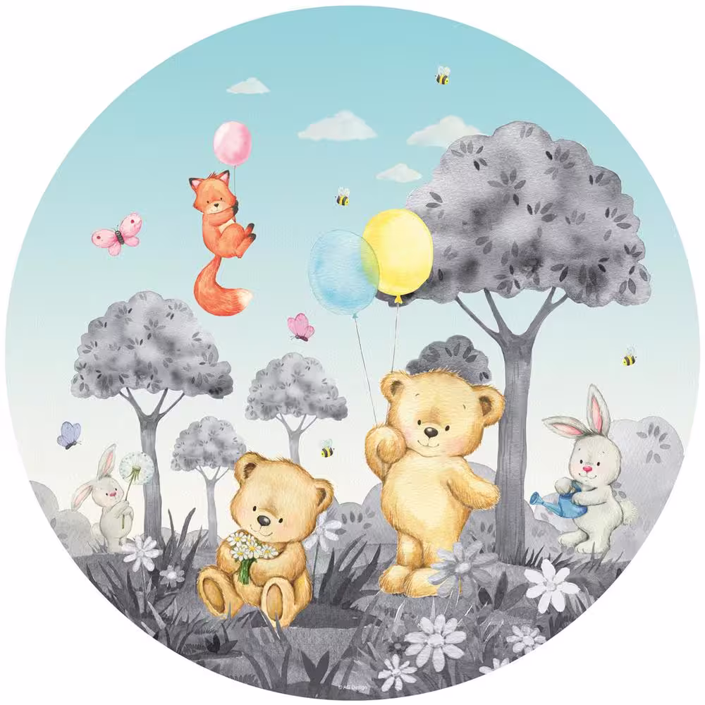 Dundee Deco Falkirk Airdrie Abstract Nursery Teddy Bears Peel and Stick Circular Wall Mural