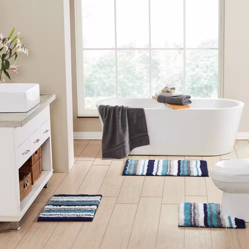 Better Trends Griffie Collection Blue and Gray Stripes Pattern 100% Cotton Rectangle 5-Piece Bath Rug and Towel Set