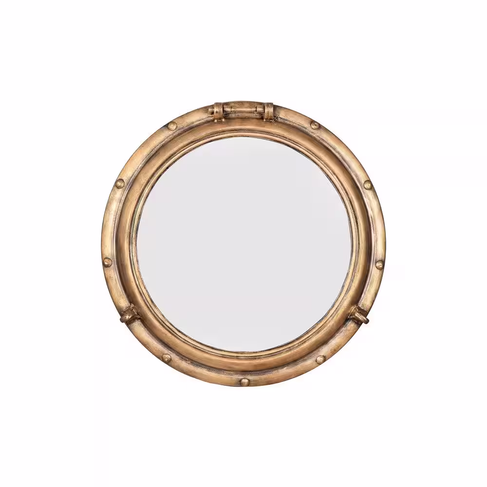 Storied Home 22 in. x 22 in. Coastal Round Distressed Framed Metal Porthole Decorative Mirror