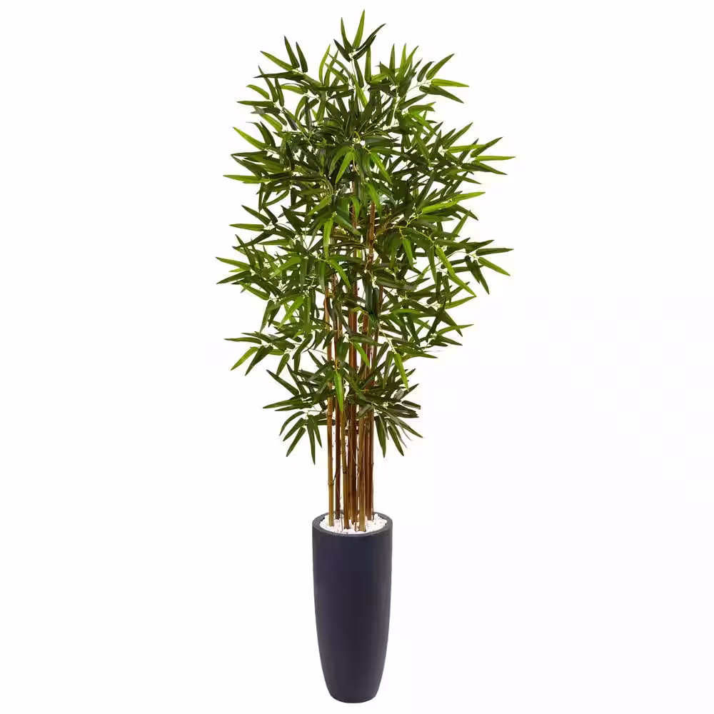 Nearly Natural Indoor Bamboo Artificial Tree in Gray Cylinder Planter