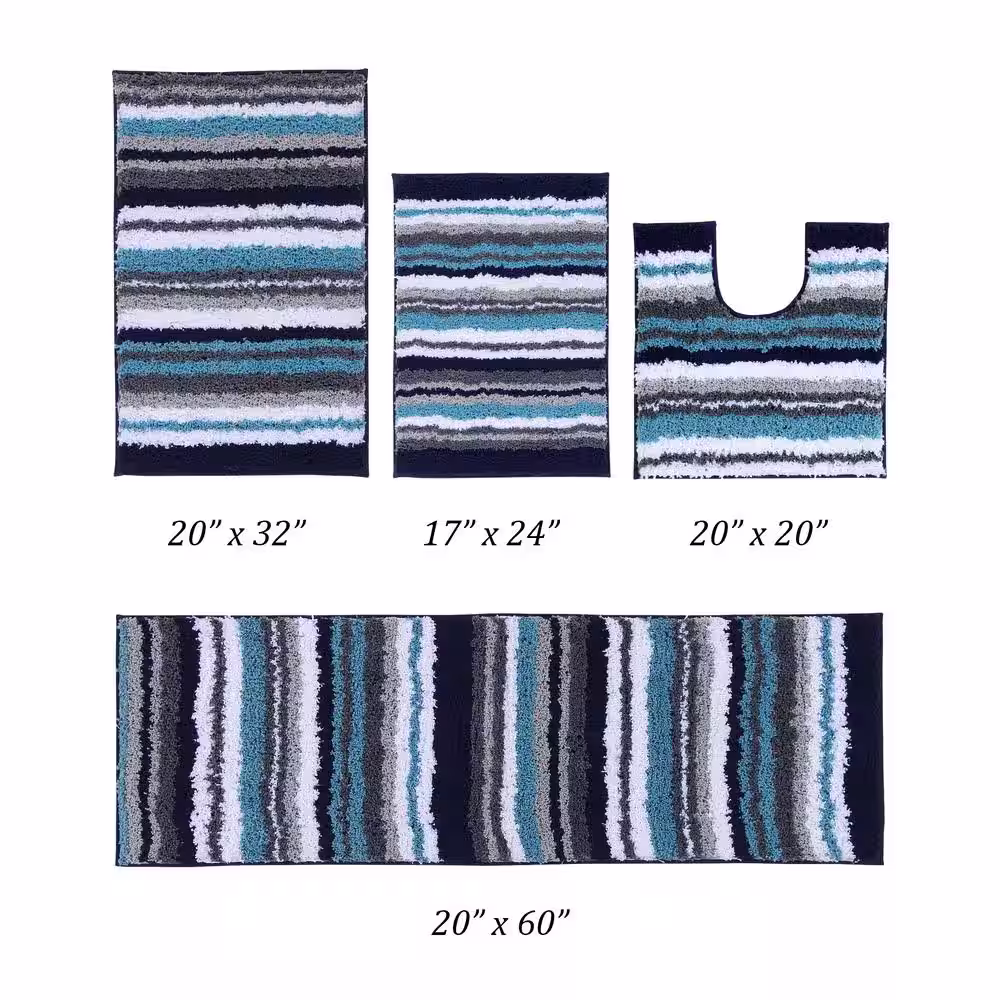 Better Trends Griffie Collection 4-Piece Blue and Grey 100% Polyester 17 in. x 24 in. Bath Rug Set