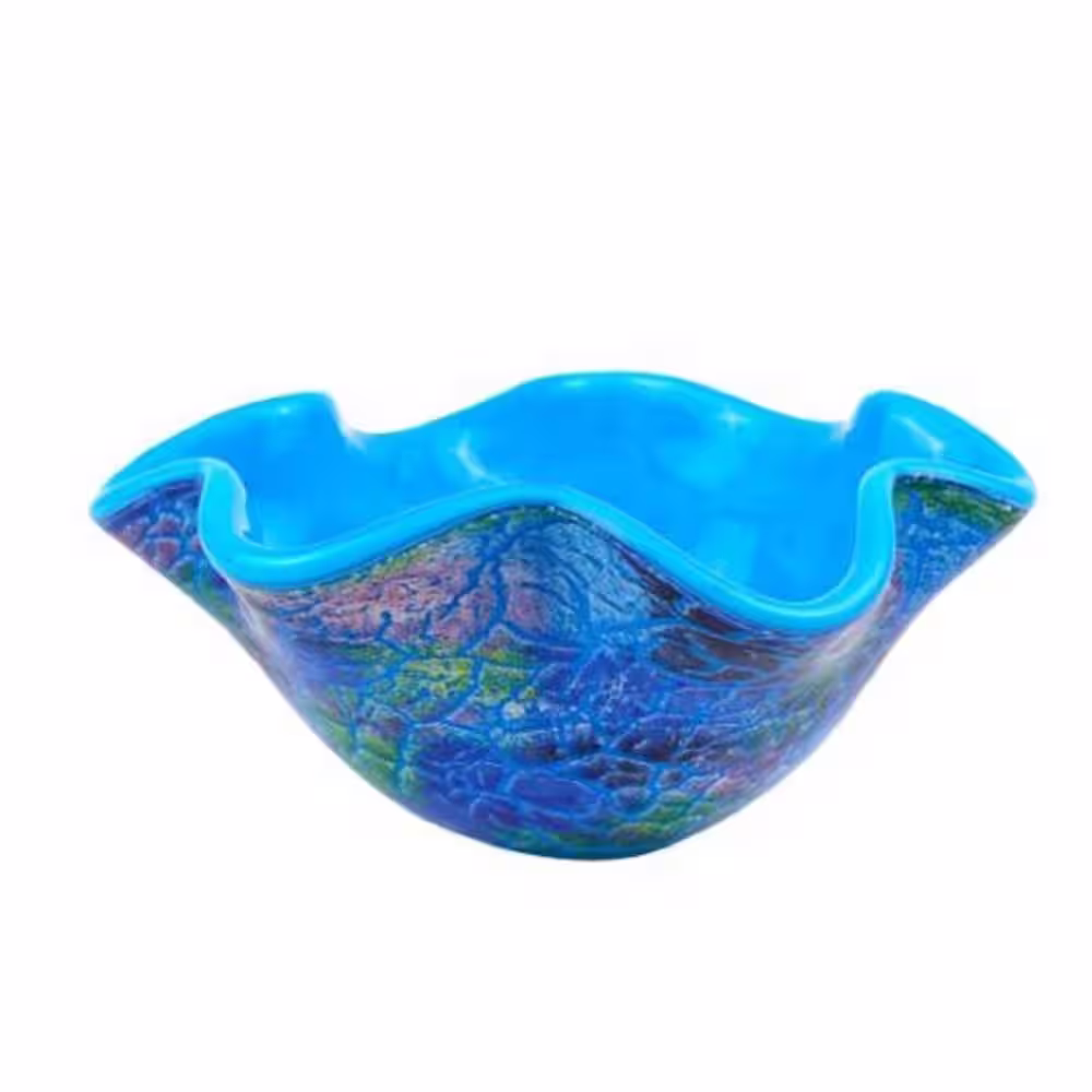 HomeRoots 4 in. Blue Abstract Multi Color Glass Centerpiece Bowl