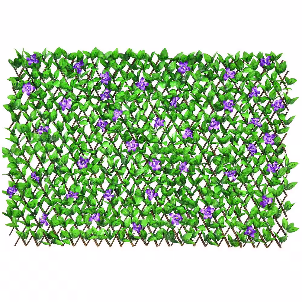 None 79 in. W x 39 in. H Artificial PE Faux Ivy Leaf Privacy Screen Fence Hedges with Flower Green and Purple