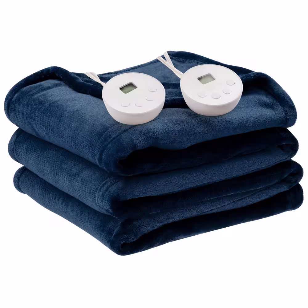 Gymax 84 in. x 90 in. Heated Electric Blanket Timer Blue Queen Size Heated Throw Blanket