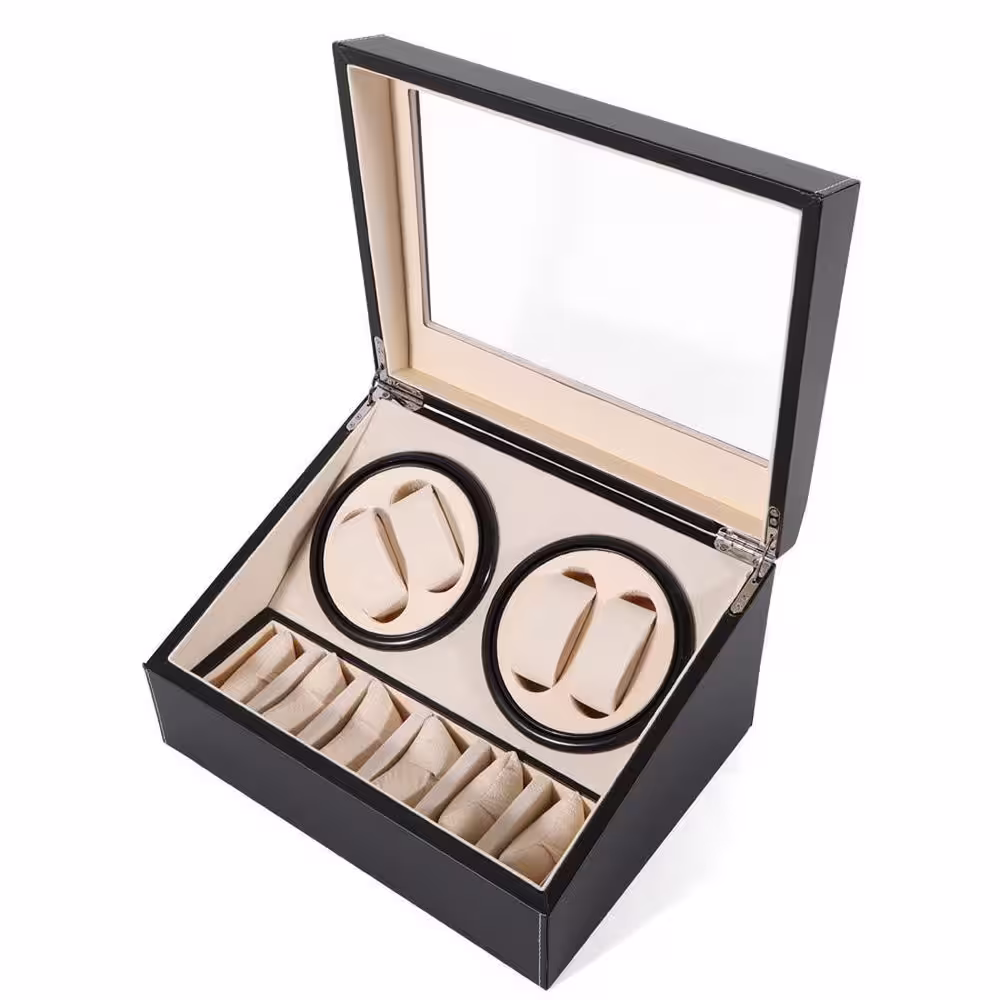 YIYIBYUS Black 4+6 Automatic Rotation Leather Wood Watch Winder Storage Box