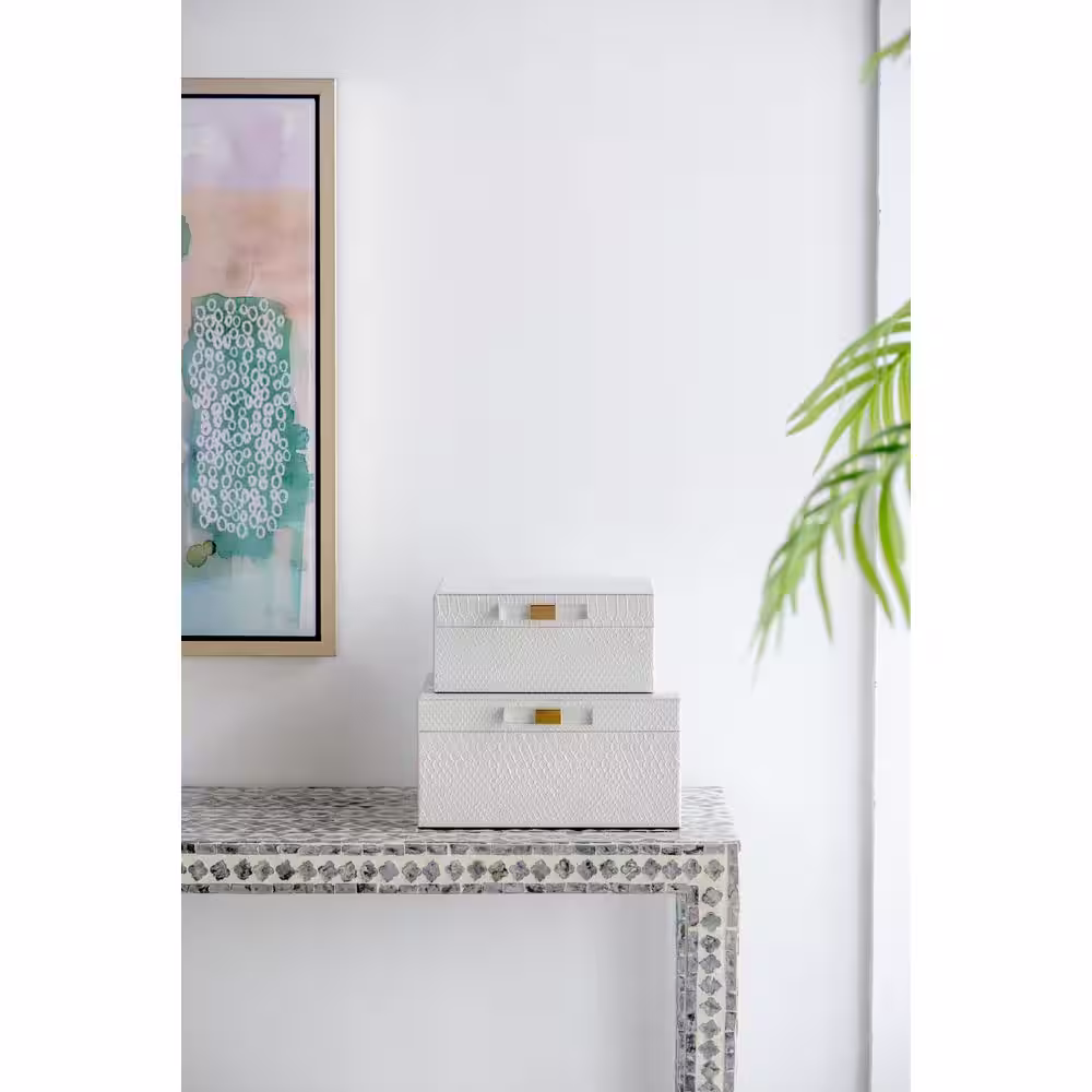 A & B Home Helga White Decorative Boxes (Set of 2)