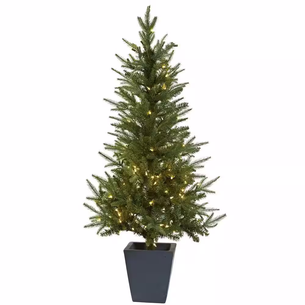 Nearly Natural 4.5 ft. Artificial Christmas Tree with Clear Lights and Decorative Planter