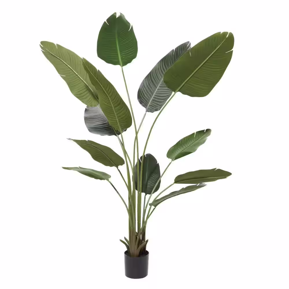 Litton Lane 70 in. H Bird of Paradise Artificial Tree with Realistic Leaves and Black Plastic Pot