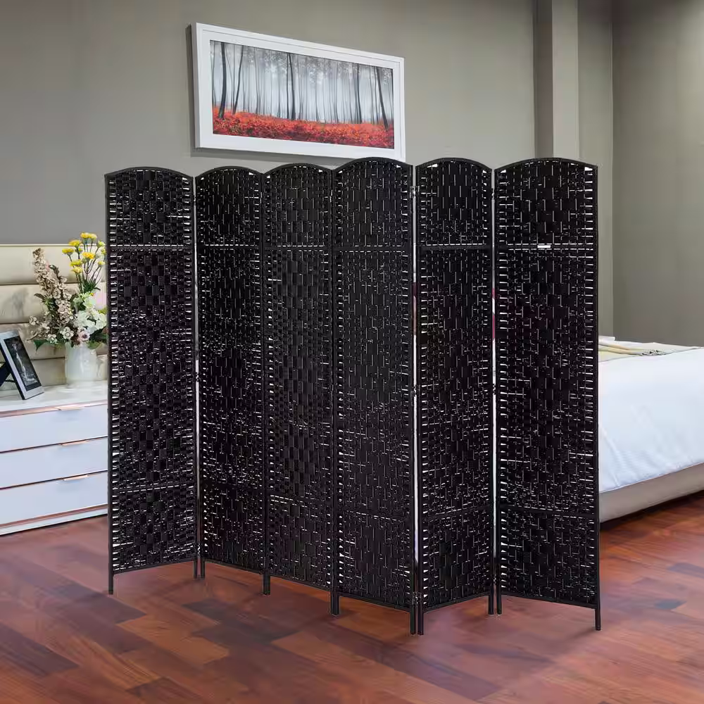 HOMCOM 6 in. Black Wood 6 -anel Wicker Weave Room Divider Privacy Screen