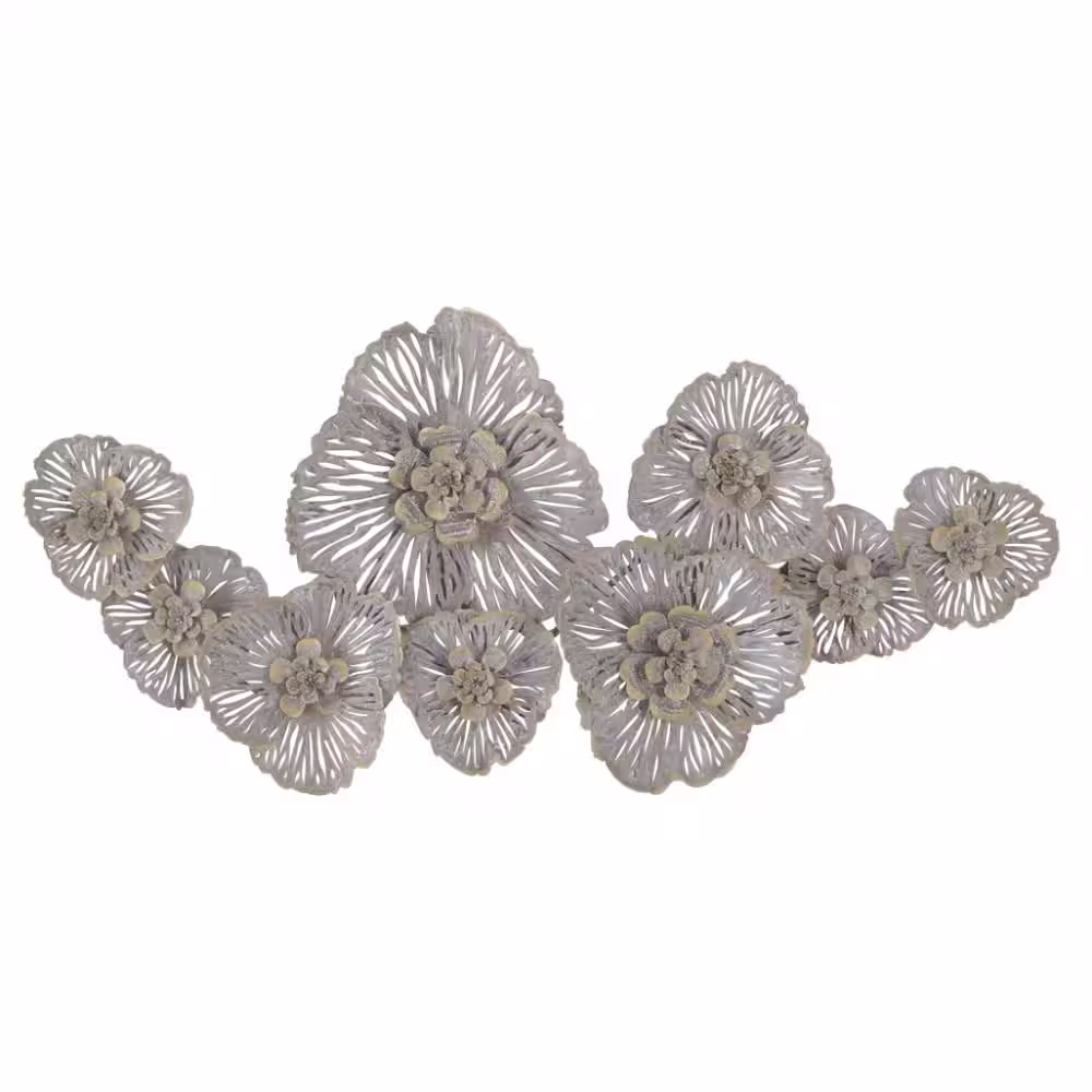 Litton Lane Metal Gray Floral Wall Decor