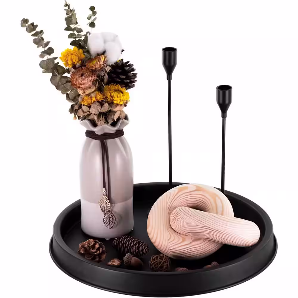 Cubilan 14"L Black Metal Round Decorative Serving Tray