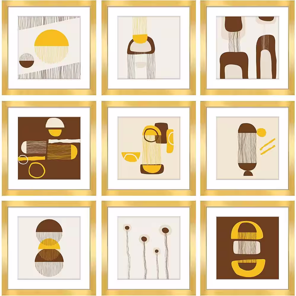 None 12 in. x 12 in. Gold Gallery Picture Frame Wall Frame Set, 9 Packs
