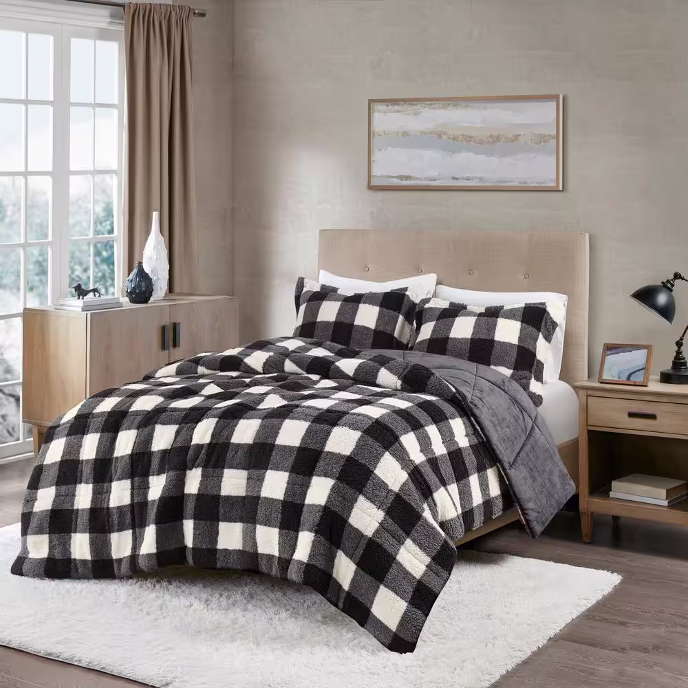 None Mason Extra Warmth 3-piece Ivory/Black King Print Sherpa Down Alternative Comforter Set