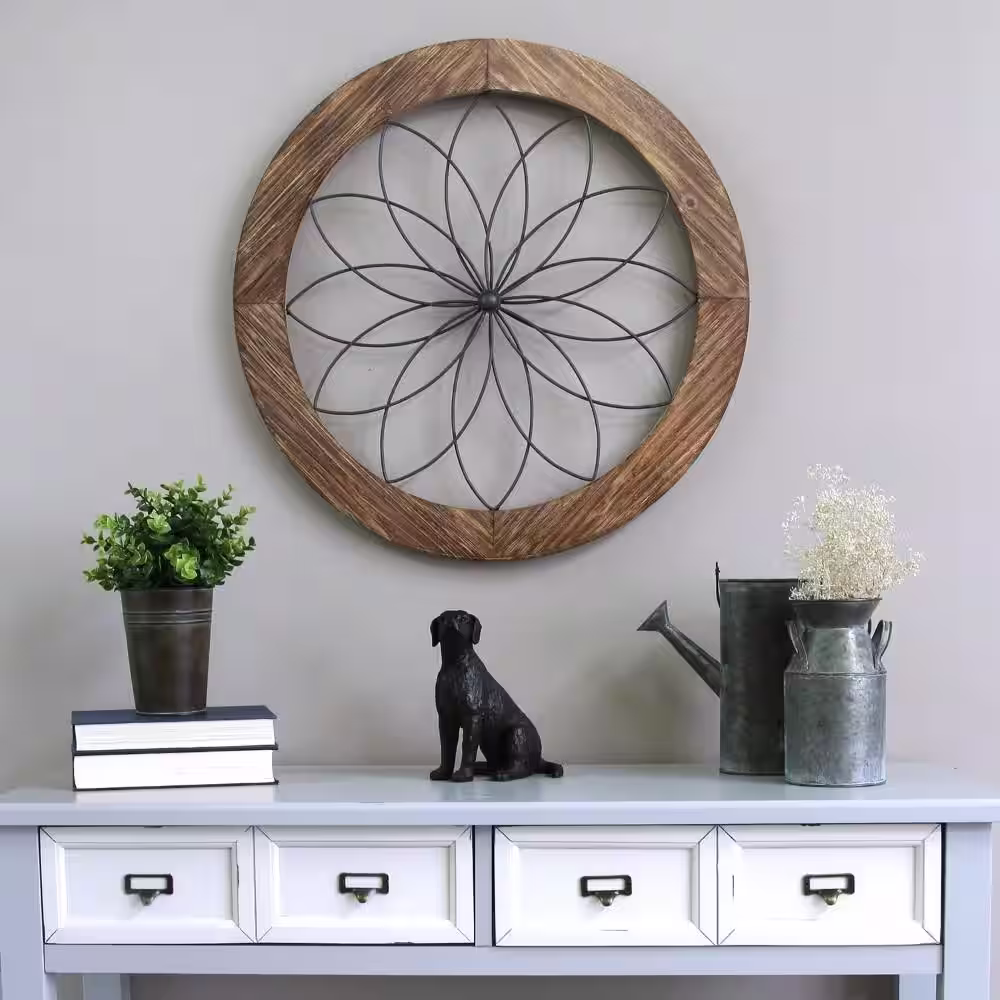 HomeRoots Black Metal & Wood Framed Wall Art