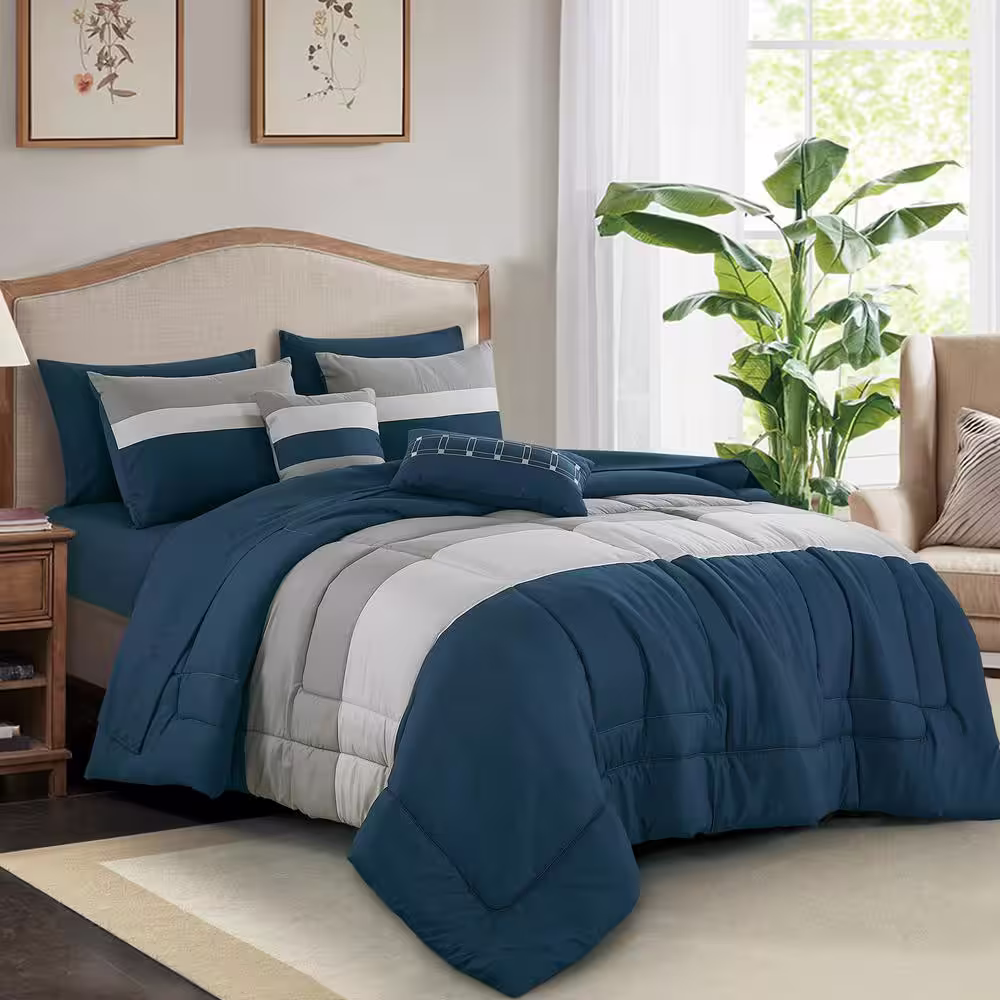 Shatex 9-Piece All Season Bedding King size Comforter Set, Ultra Soft Polyester Elegant Bedding Comforters Blue