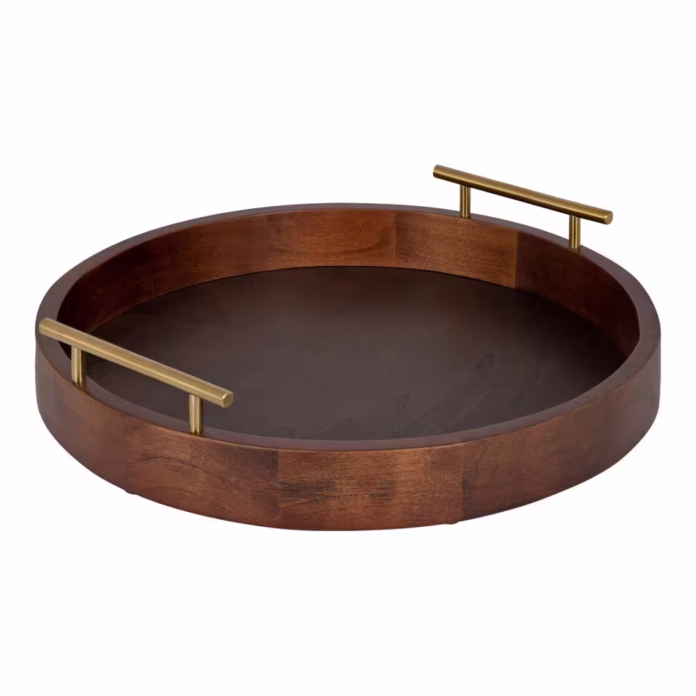 Kate and Laurel Lipton 3.25 in. W Round Walnut Brown Wood Decorative Tray