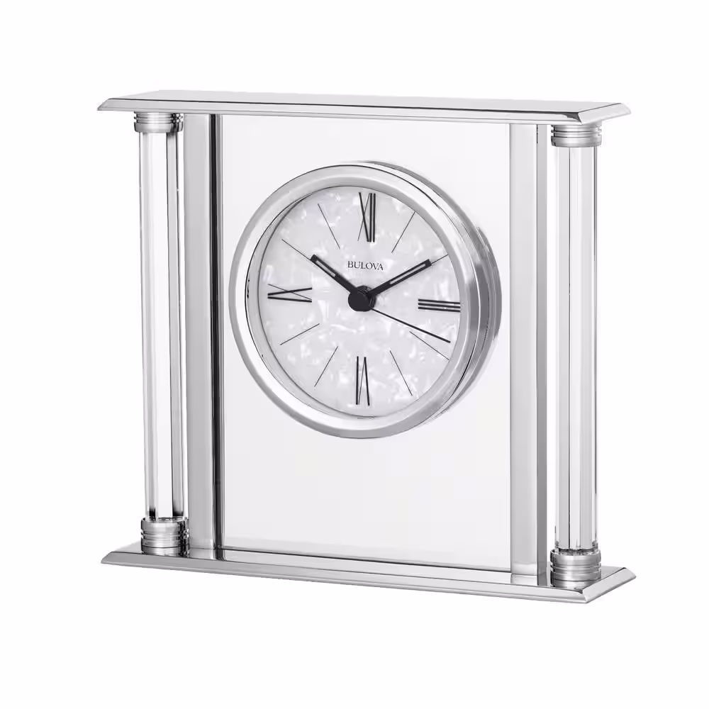 Bulova Solid Silver Metal Case with Octogonposts Table Clock