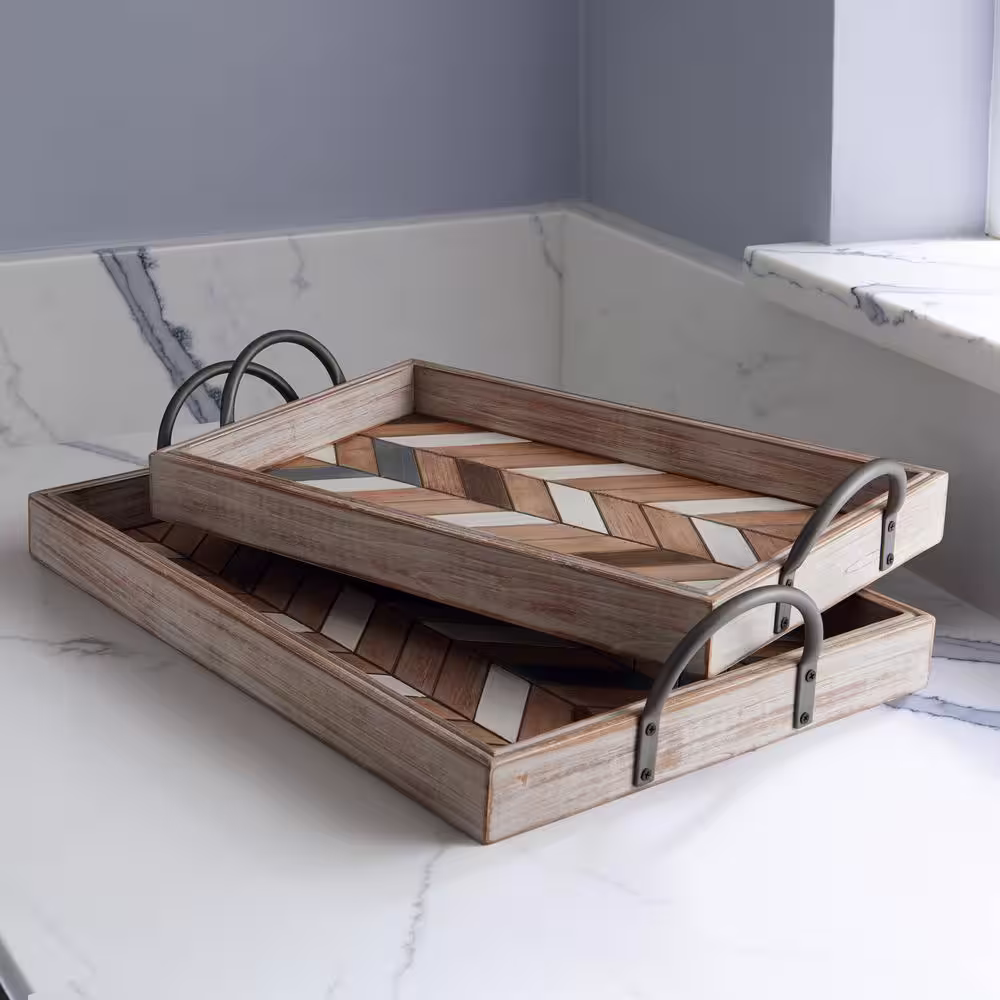 Lifetime Brands Set Of 2-MDF Multi Colored Decorative Tray