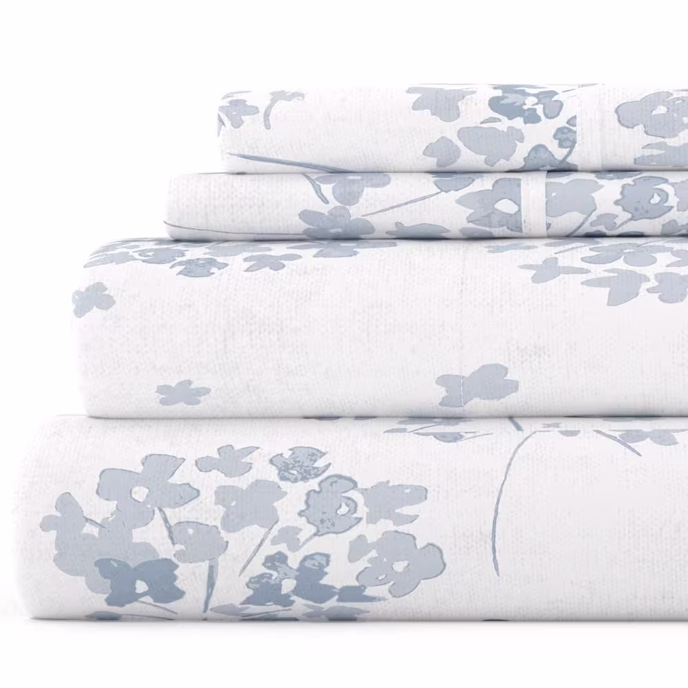 Becky Cameron Premium 4 Piece Light Blue Rose Bunch Flannel Queen Sheet Set