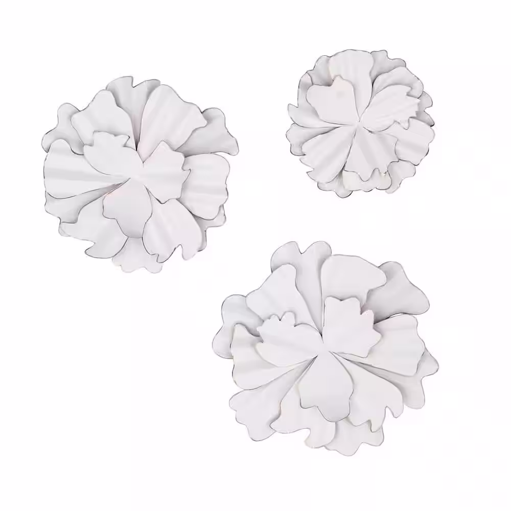 Litton Lane Metal White Floral Wall Decor (Set of 3)