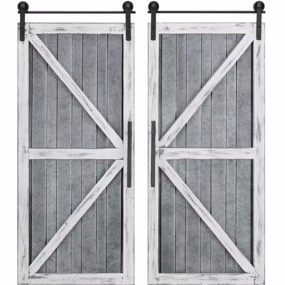 None 14 x 2 x 34 in. Wood White Carriage Farmhouse Barn Door Plaque 2-Piece Set
