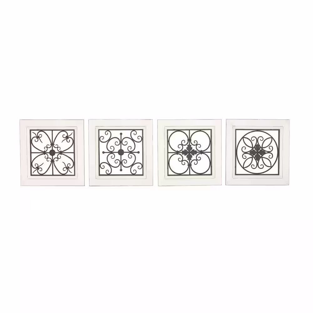 Litton Lane Wood White Scroll Wall Decor with Metal Relief (Set of 4)