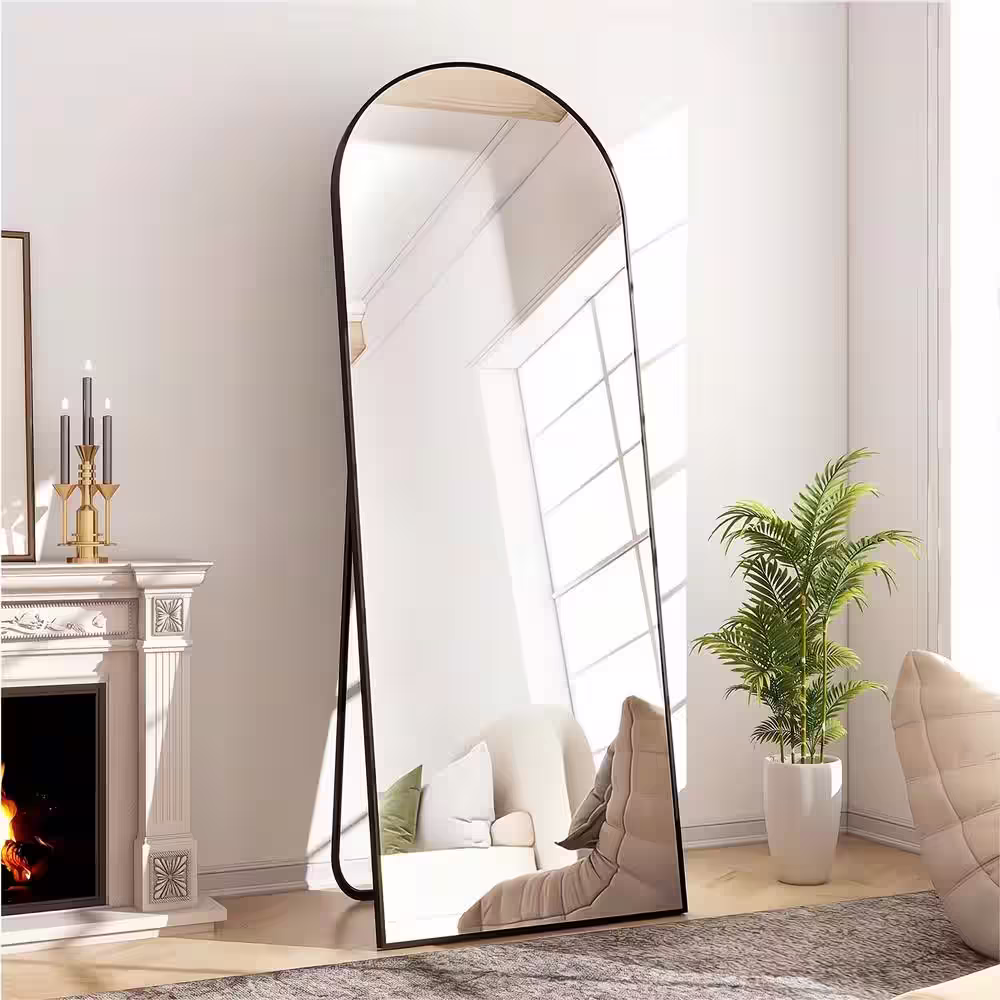 XRAMFY 20 in. W x 64 in. H Arched Black Modern Aluminum Alloy Framed Full Length Mirror Floor Mirror