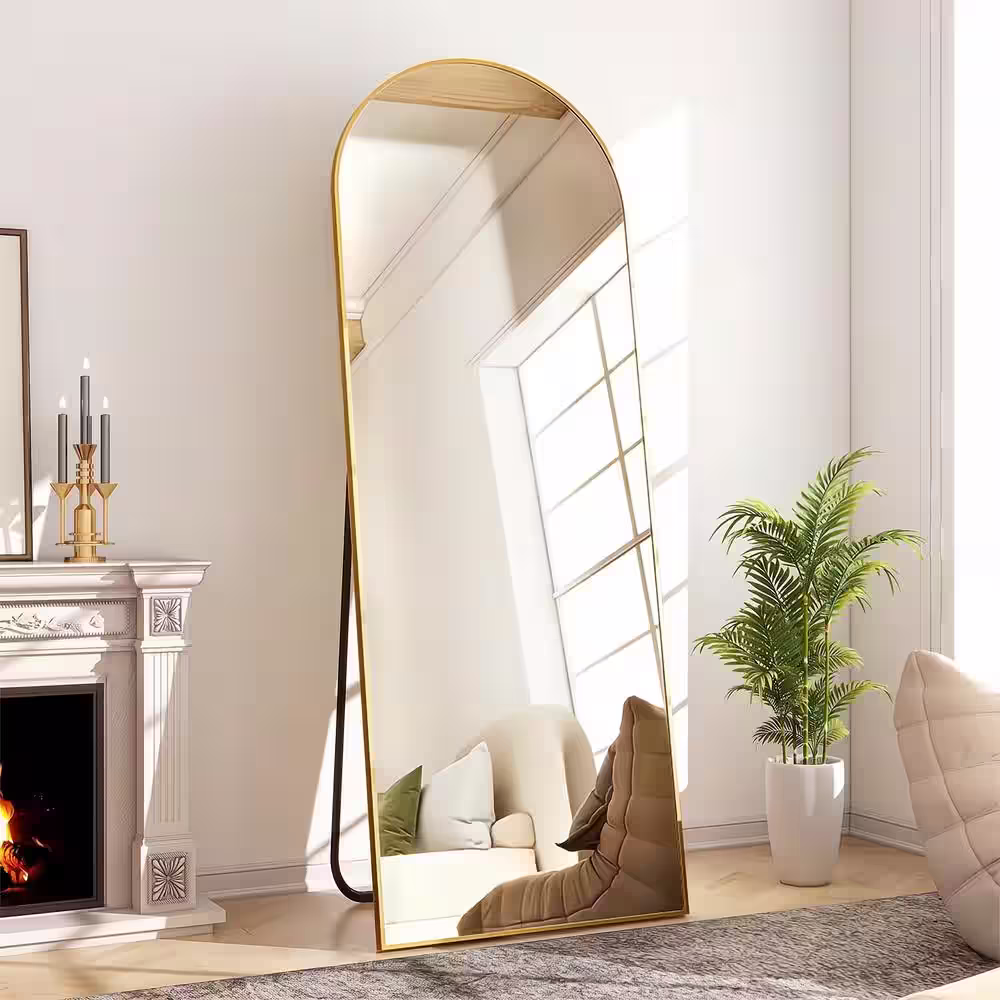 XRAMFY 20 in. W x 64 in. H Arched Gold Modern Aluminum Alloy Framed Full Length Mirror Floor Mirror