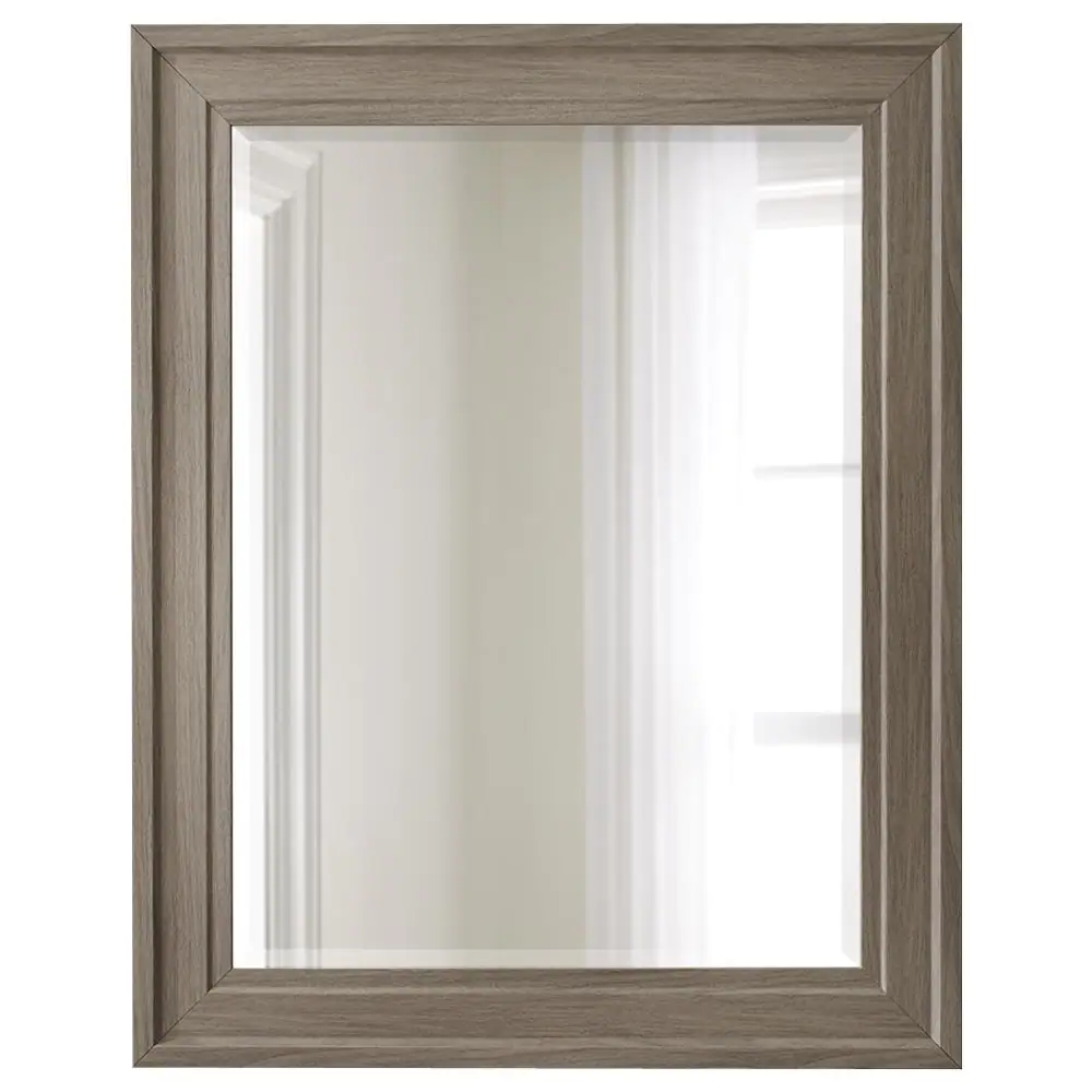 None Medium Rectangle Gray-Wood Beveled Glass Contemporary Mirror (38 in. H x 30 in. W)