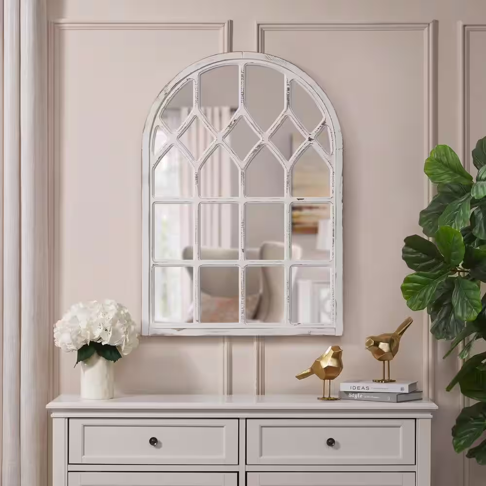 Home Decorators Collection Medium Arched White Windowpane Antiqued Classic Accent Mirror (26 in. H x 36 in. W)