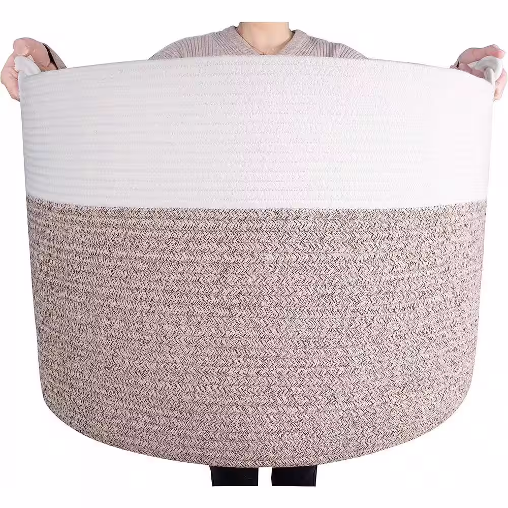 None 22 x 16 in. Light Brown Decorative Cotton Rope Basket