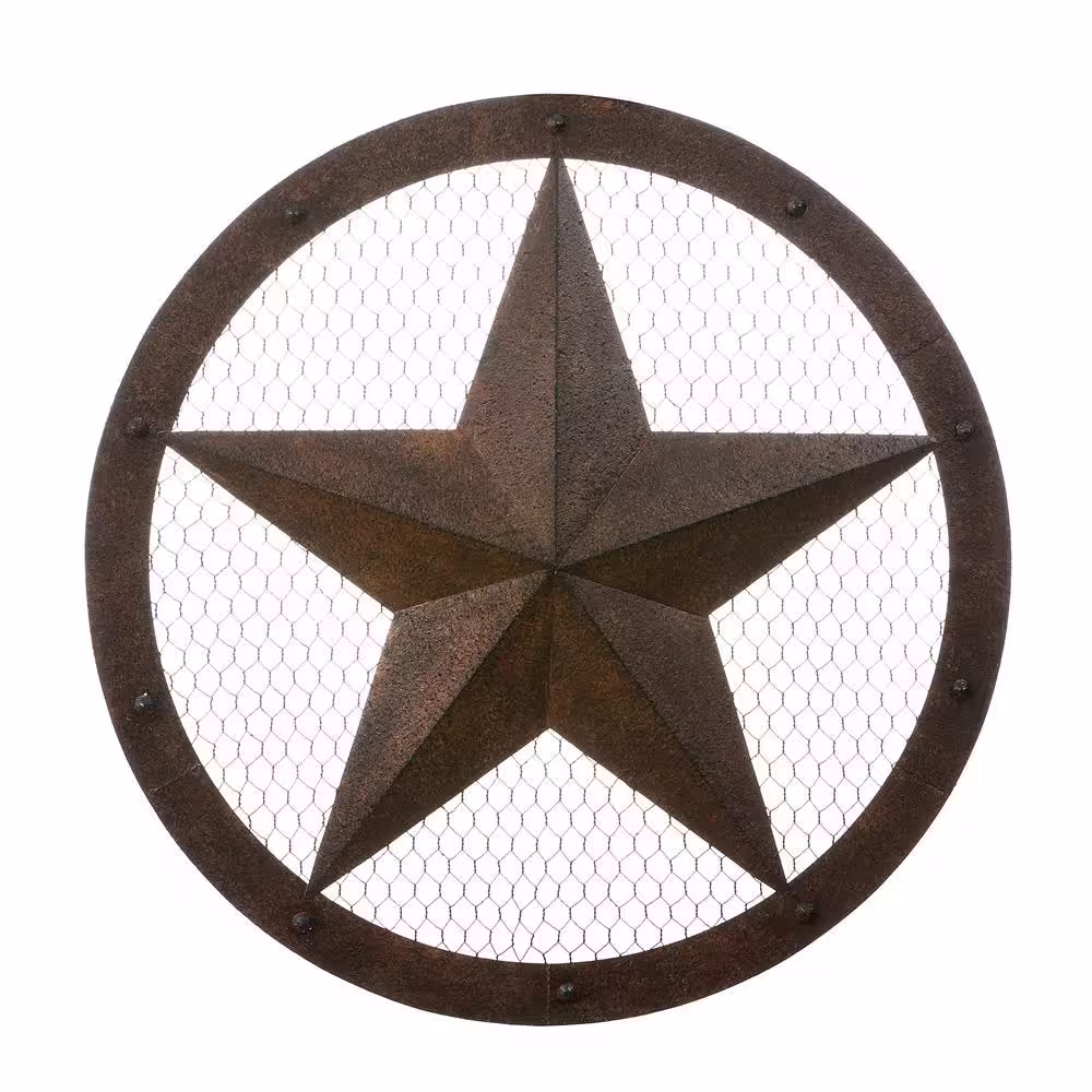 LuxenHome Star Round Frame Outdoor Metal Brown Wall Decor