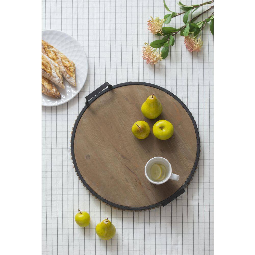 A & B Home Brown Wood Bead Tray with Metal Handles 17.5 in. Dia x 3.5 in.