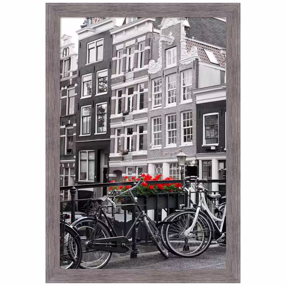 Amanti Art Opening Size 24 in. x 36 in. Pinstripe Plank Grey Narrow Picture Frame
