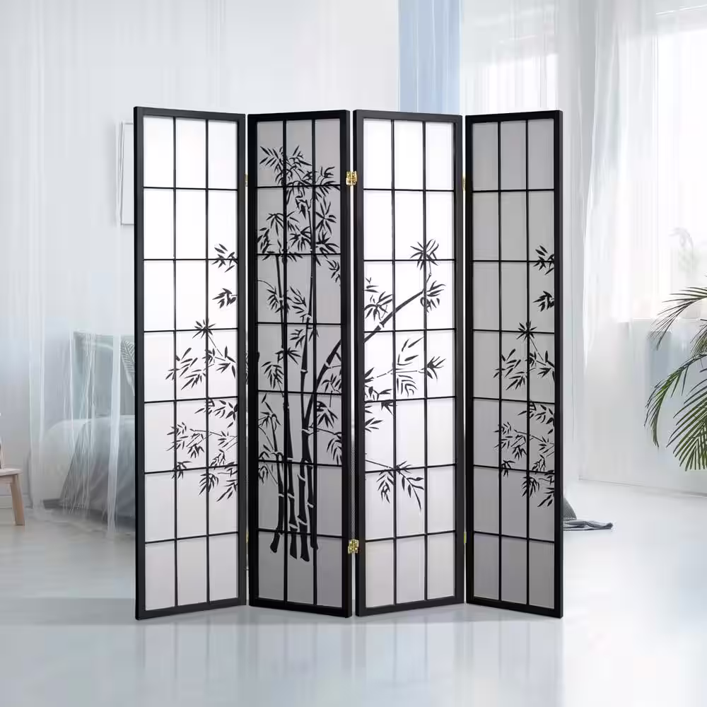 Oriental Furniture 6 ft. Black 4-Panel Room Divider