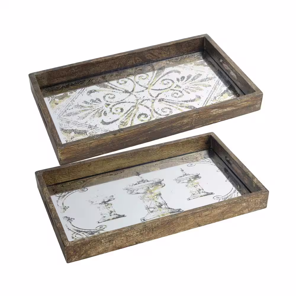 A & B Home Greta Rectangular Glass and Wood Natural Large Trays