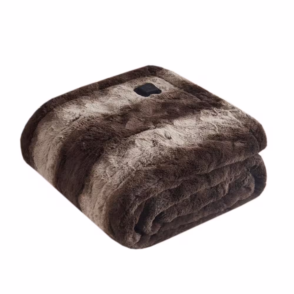 Beautyrest Marselle Brown 50 in. x 64 in. Faux Fur Heated Wrap with Built-in Controller