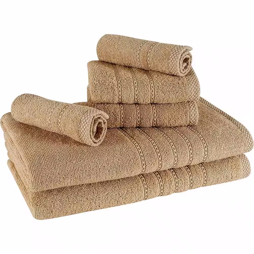None 6-Piece Beige Cotton Towel Set