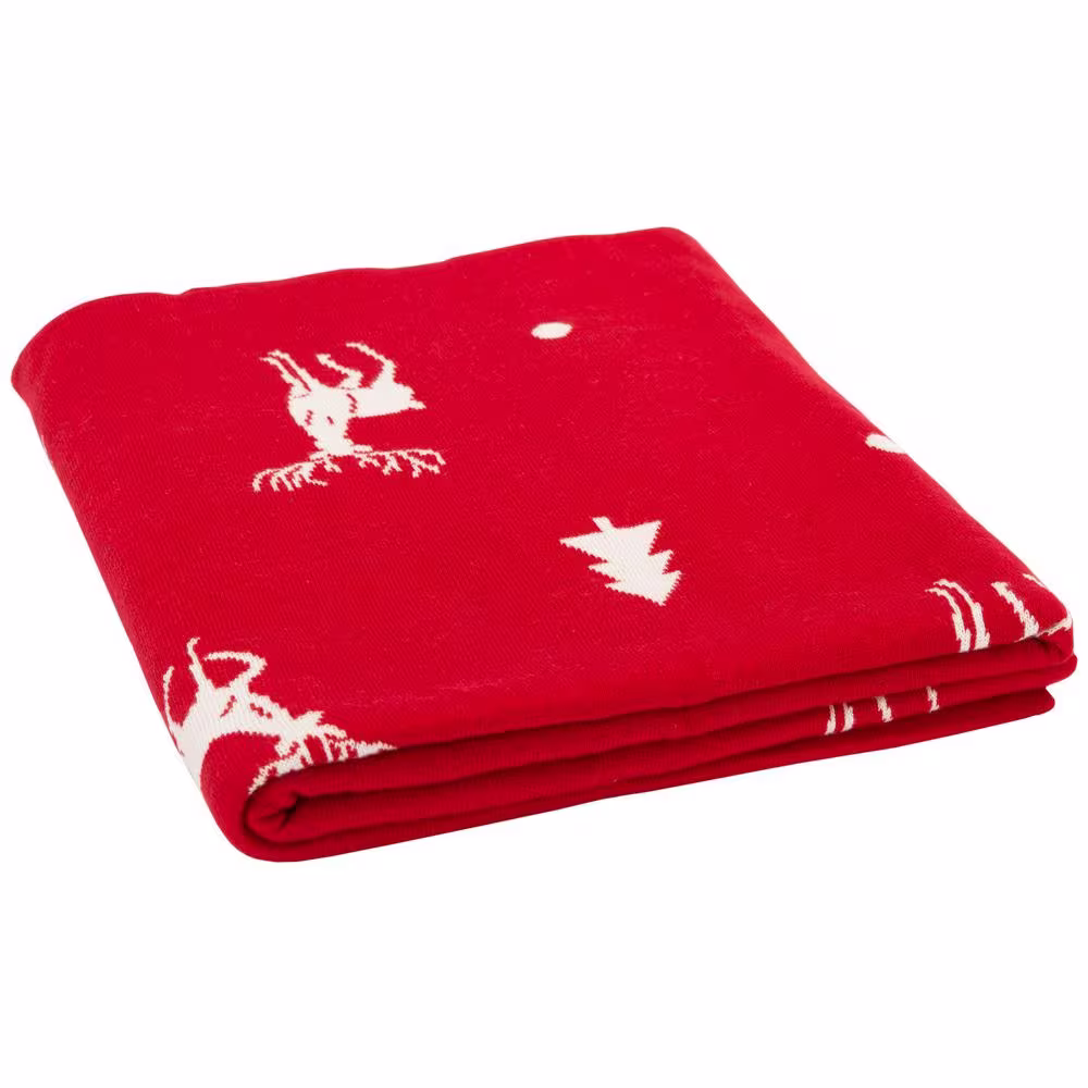 None Miracle Reindeers Red Cotton Throw Blanket