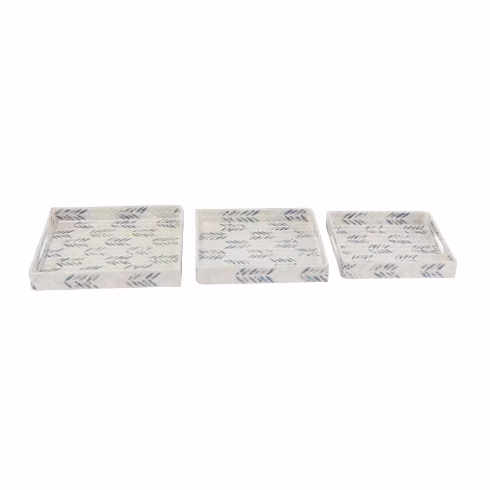 None White Mother of Pearl Decorative Tray with Checkerboard Pattern (Set of 3)