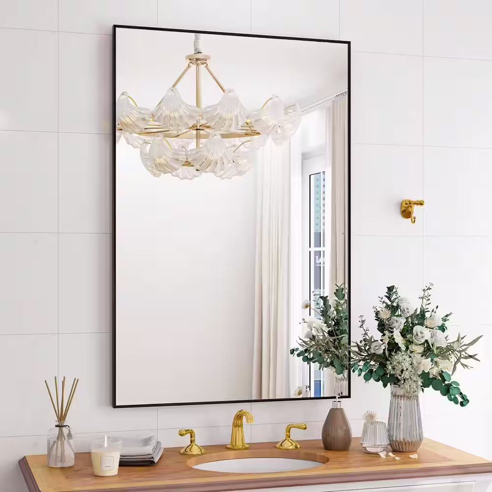 XRAMFY 29.5 in. W x 39.5 in. H Rectangular Aluminum Alloy Framed Modern Black Wall Mirror