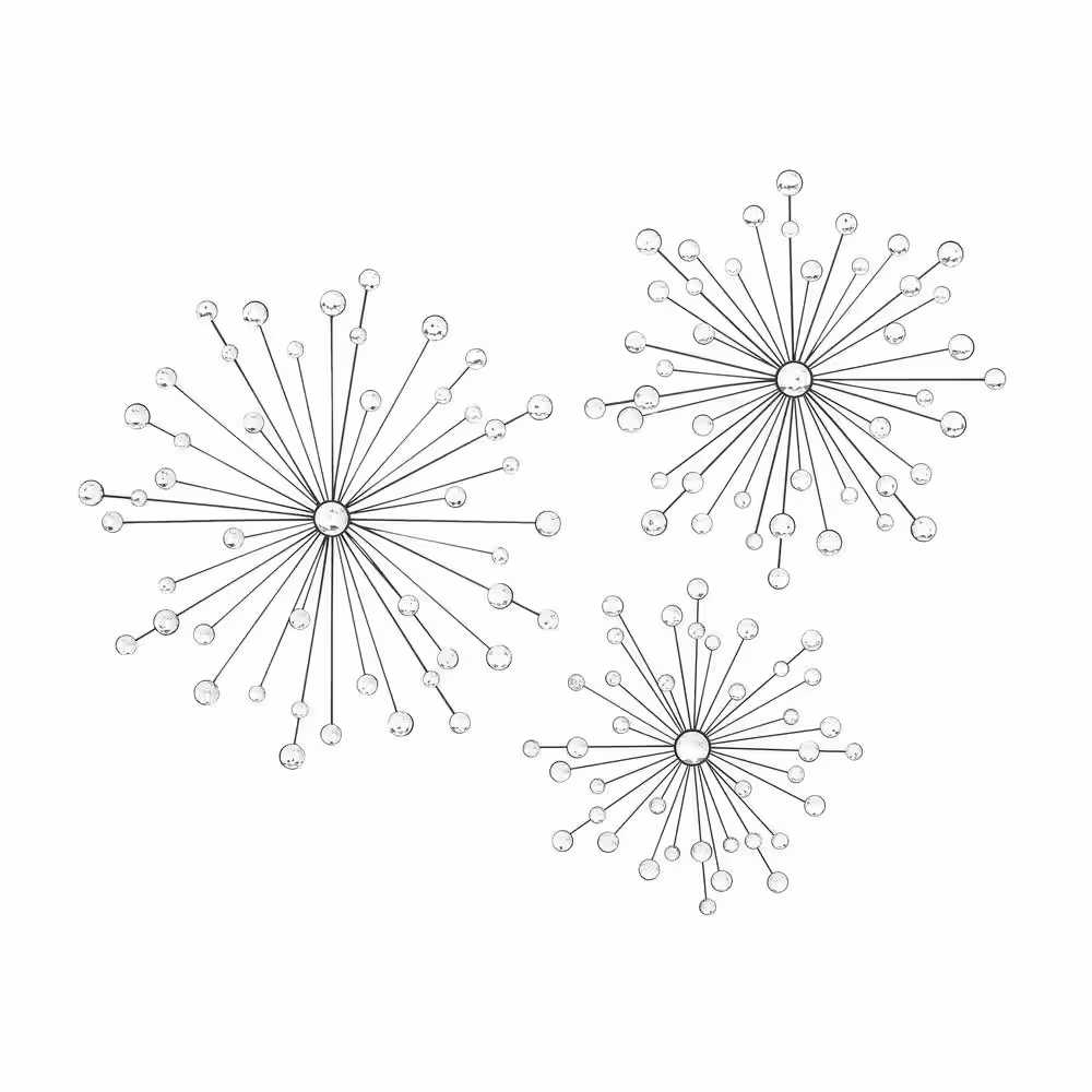 Litton Lane Metal Black Sunburst Wall Decor with Crystal Embellishment (Set of 3)