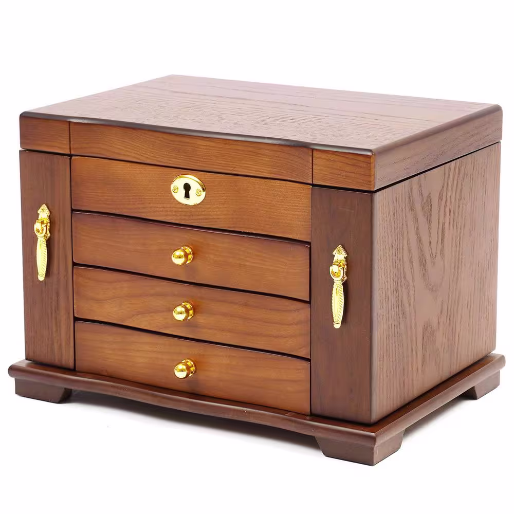 None 4-Drawer Wooden Jewelry Box with Mirror and Lock