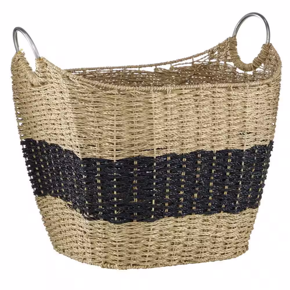 Litton Lane Seagrass Handmade Two Toned Storage Basket with Metal Handles