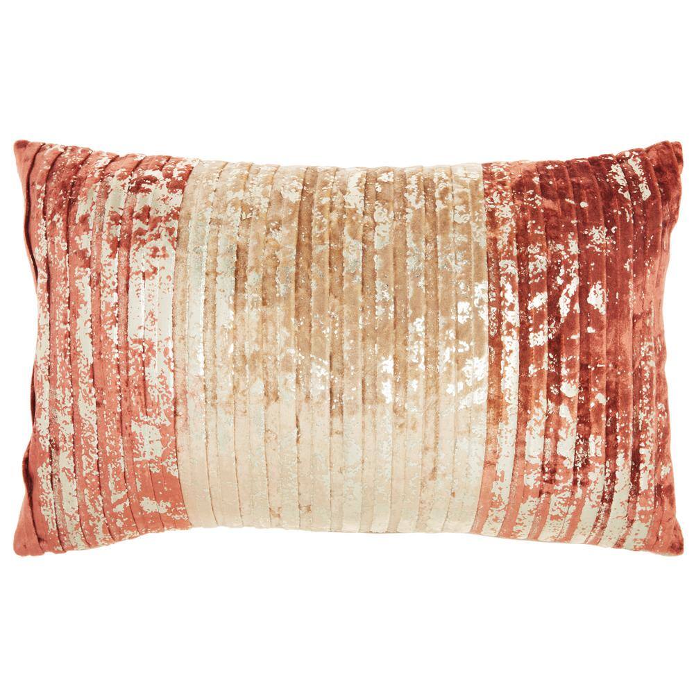 Mina Victory Sofia Rose Gold Pleated Velvet 20 in. x 12 in. Rectangle Throw Pillow