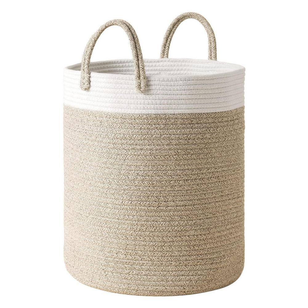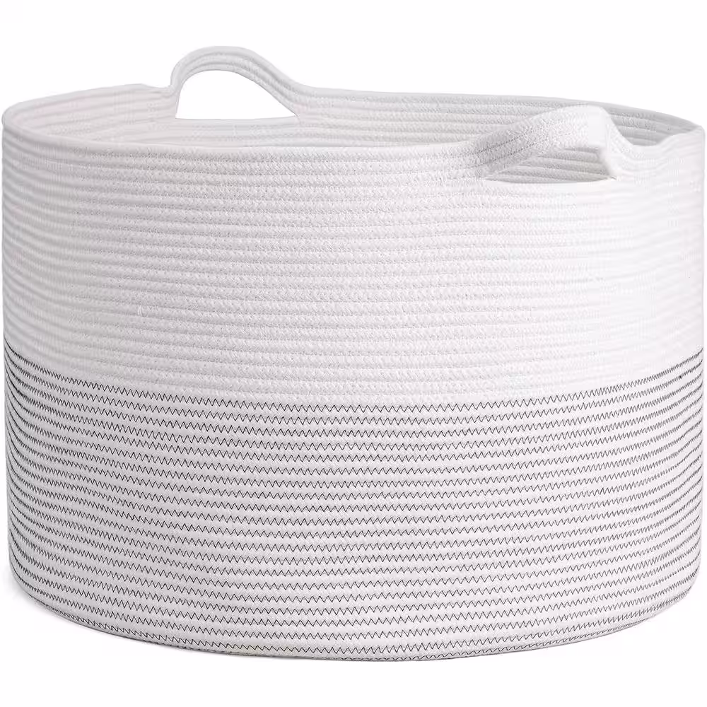 None Cotton Rope Basket, 21.7 in. x 21.7 in. x 13.8 in. White Woven Baby Laundry Basket for Blankets