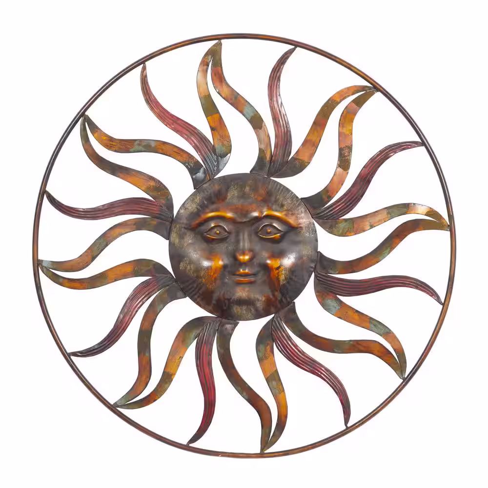 Litton Lane Metal Brown Indoor Outdoor Sun Wall Decor with Distressed Copper Like Finish