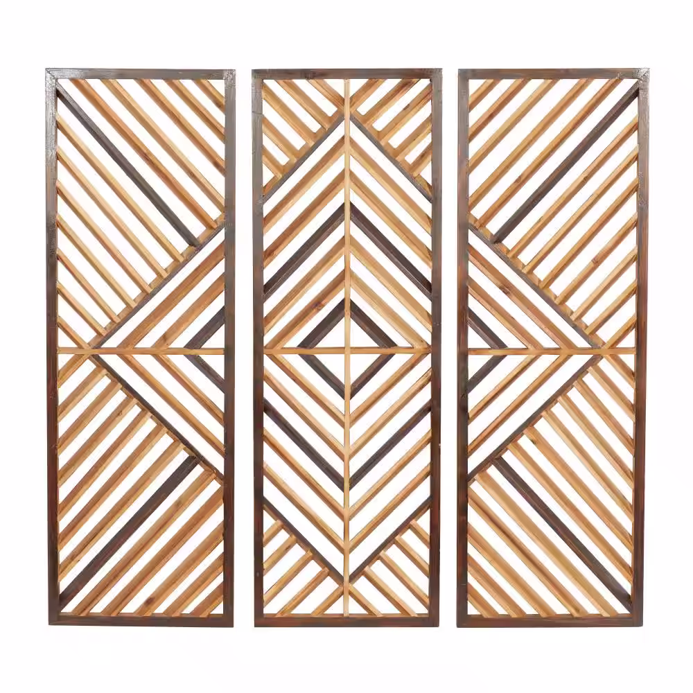 Litton Lane Wood Brown Slatted Wood Design Geometric Wall Decor (Set of 3)