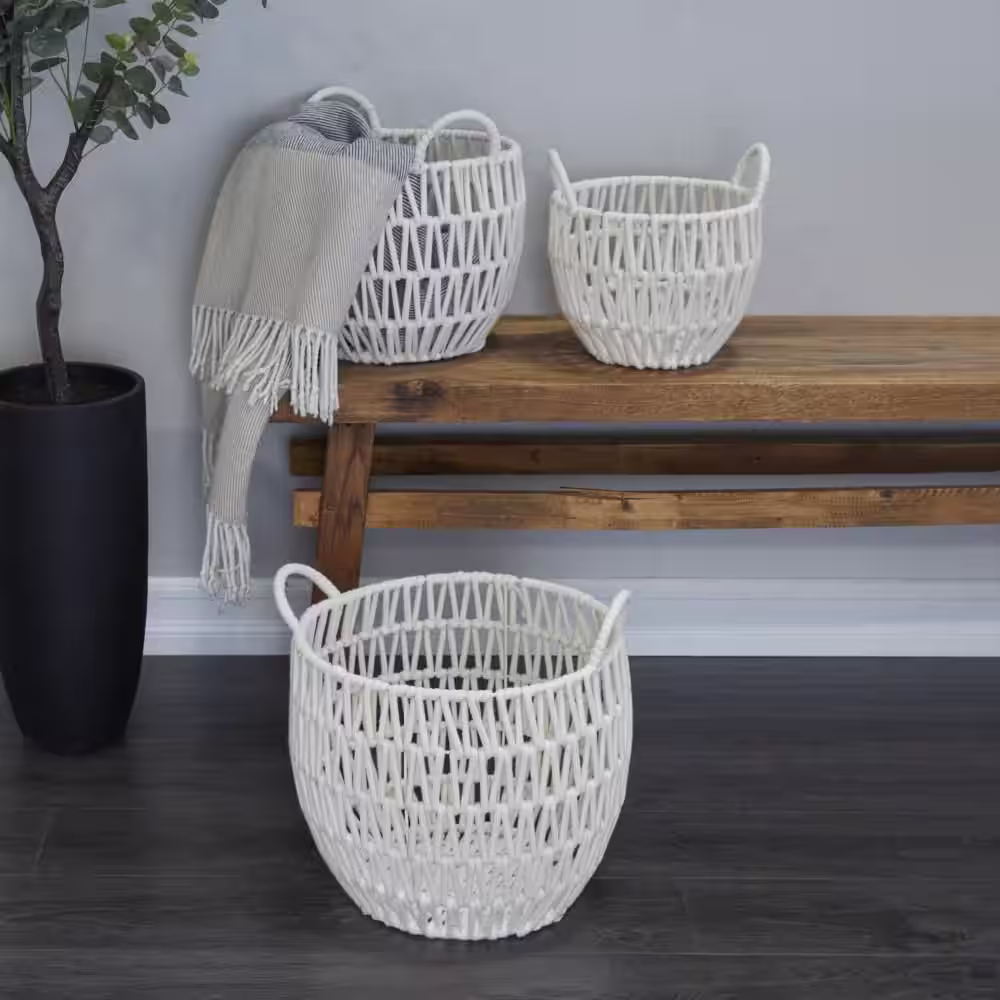 Litton Lane Cotton Handmade Storage Basket with Handles (Set of 3)